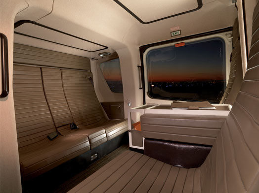 6 Passenger VIP Seating Configuration, three forward passenger seats, facing backwards, two rear passenger seats, facing forward. £2,800,000.