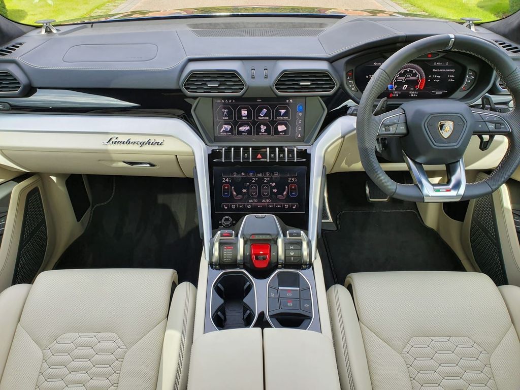 Absolutely stunning Lamborghini Urus in Blu Astraeus with Nero Ade Interior and Bianco Polar Elegente Leather. Fitted with the Full ADAS Pack+HUD (Head Up Display), Night Vision, Ambient Light Package, Television Modul With Pay TV, Full Electric Front Comfort Seats with Ventilation and Massage Function, Tailgate Handless Opener, Electric Panorama Roof, Sunshine Package, Bright Chrome Exhaust Tailpipes, Bang/Olufsen Advanced 3D Audio System, Embroidered Lamborghini Shield on Headrest, Black Painted Brake Calipers, Lamborghini Offroad Modes, and more. Blue, 1 owner.